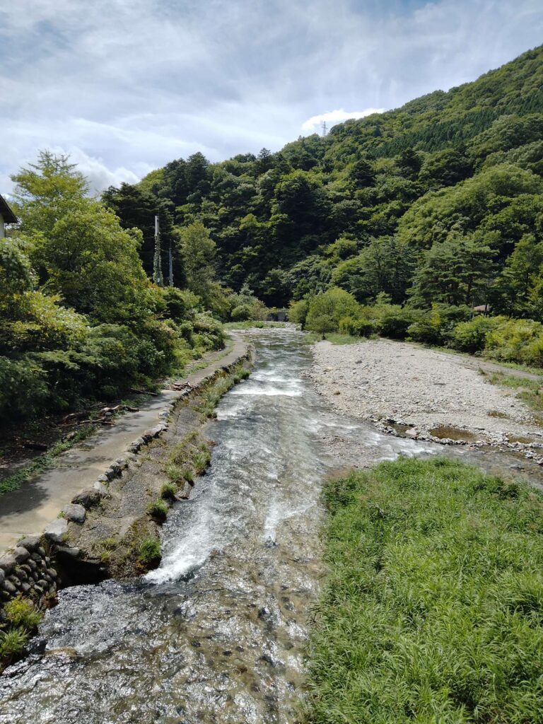 地元の温泉という雰囲気で落ち着く、露天風呂もある、横を流れている川では渓流釣りをしている人もいた